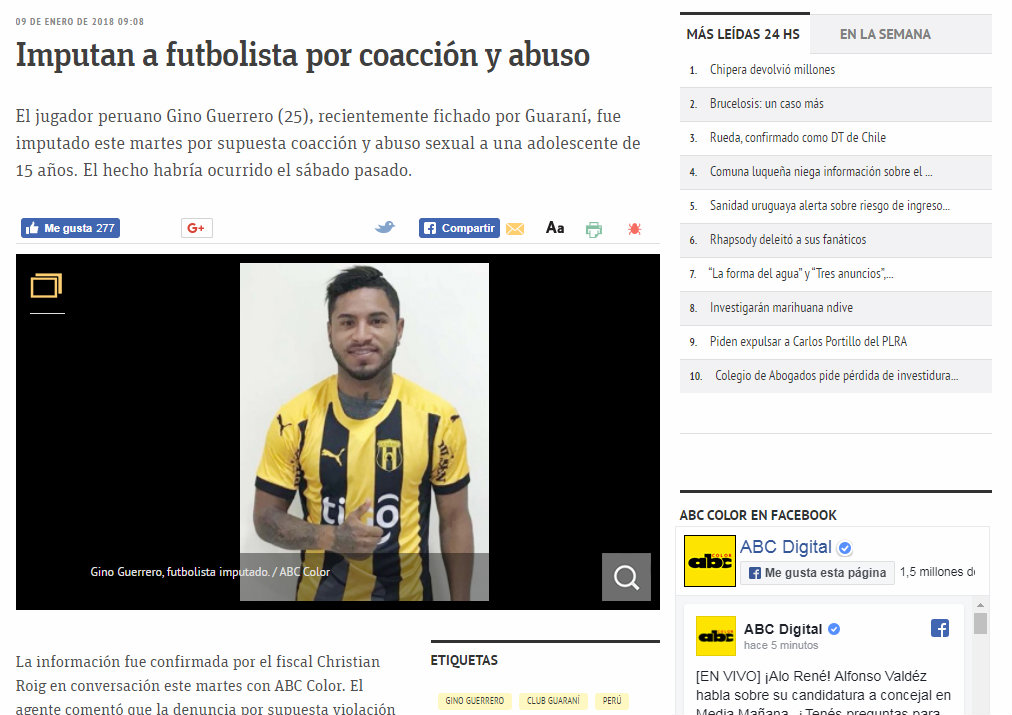 Gino Guerrero acusado de intento de violación: así informa la prensa de Paraguay