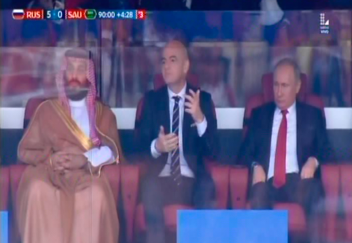 El príncipe saudí lamentaba el quinto gol y Putin tuvo particular reacción