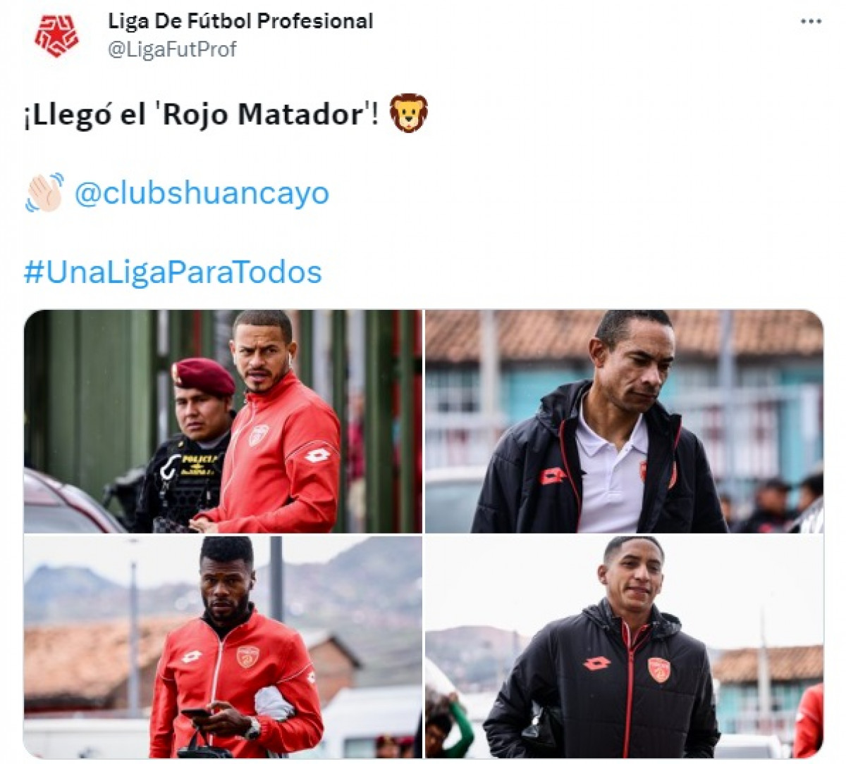 Las redes sociales de la Liga 1 siguen cubriendo la antesala del Cusco FC vs. Sport Huancayo. Esta vez, la orgzanización del torneo informó que el Rojo Matador ya se encuentra en el estadio Inca Garcilaso de la Vega, donde se llevará a cabo el duelo. Foto: captura de @LigaFutProf