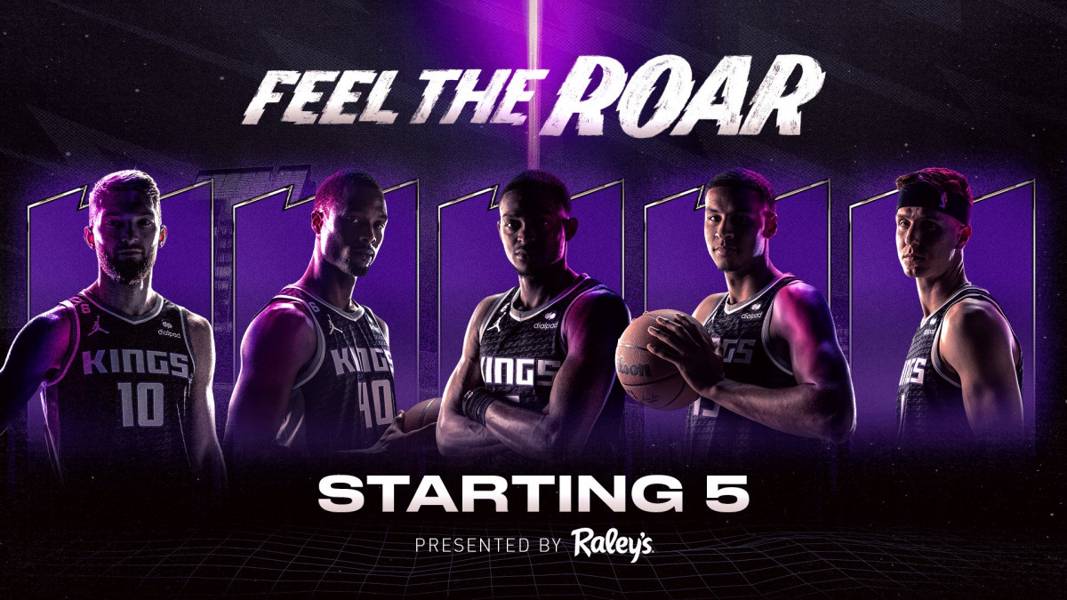 Equipo titular de Kings: De'Aaron Fox, Kevin Huerter, Harrison Bames, Keegan Murray, Domantas Sabonis. Foto: Sacramento Kings
