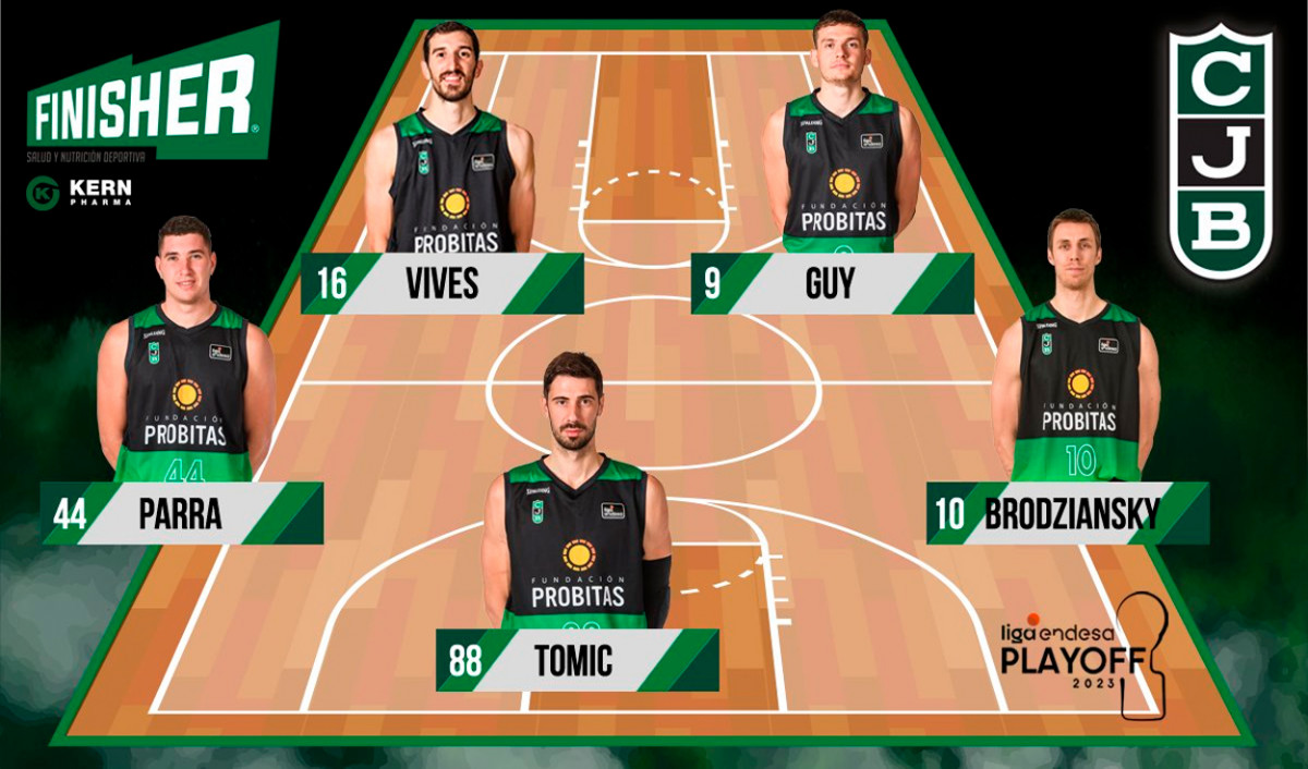 Joventut entra al terreno con Guillem Vives, Kyle Guy, Joel Parra López, Vladimir Brodziansky y Ante Tomic.