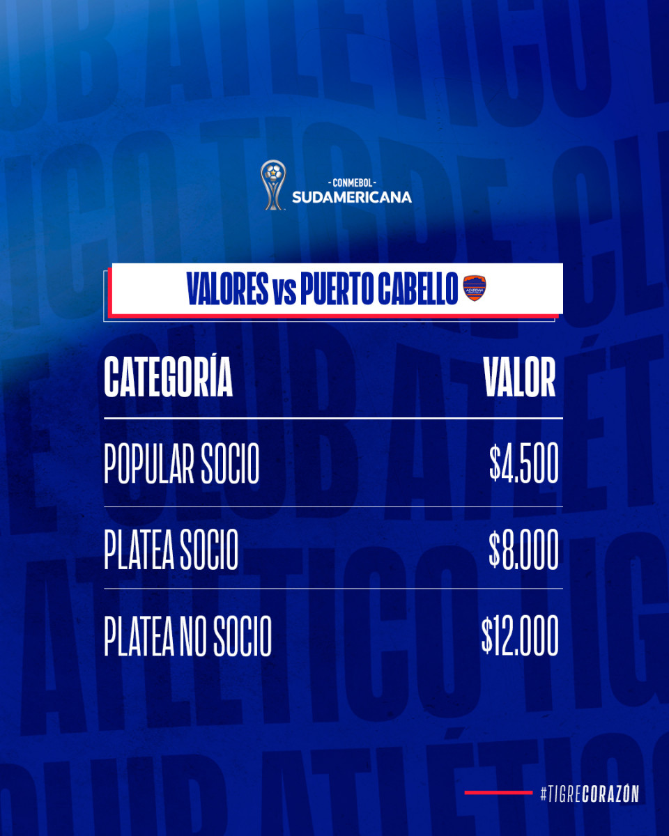 Tigre vs. Puerto Cabello: ¿cuánto cuestan las entradas para el partido?
