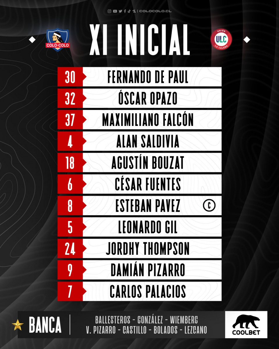 ¡Alineacion confirmada de Colo Colo!
