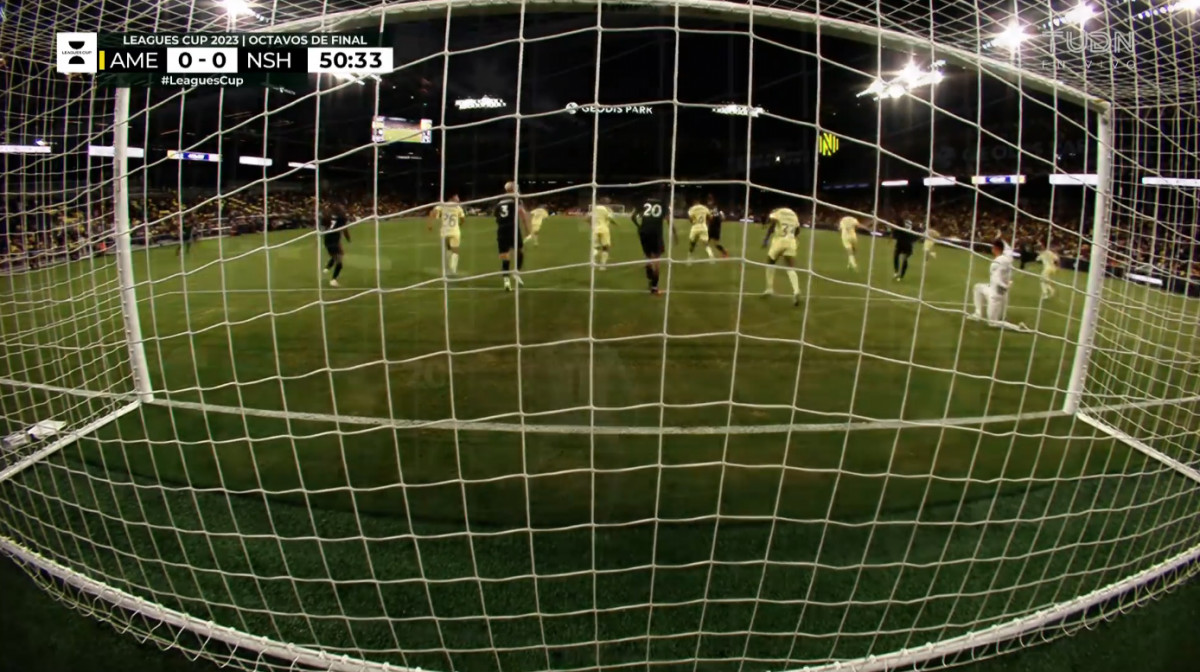 Minuto 35. El partido se juega más en cancha de Nashville, pero América no ha logrado concretar un tiro directo al arco de Willis hasta el momento. Foto: captura TUDN