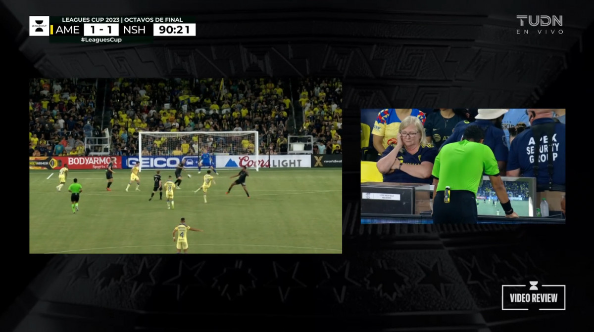 Minuto 51. La tuvo Nashville tras una pelotera en el área en un tiro de esquina. Hubo reclamos de los jugadores para que el árbitro revise el VAR, pero no pasó nada. Foto: captura TUDN