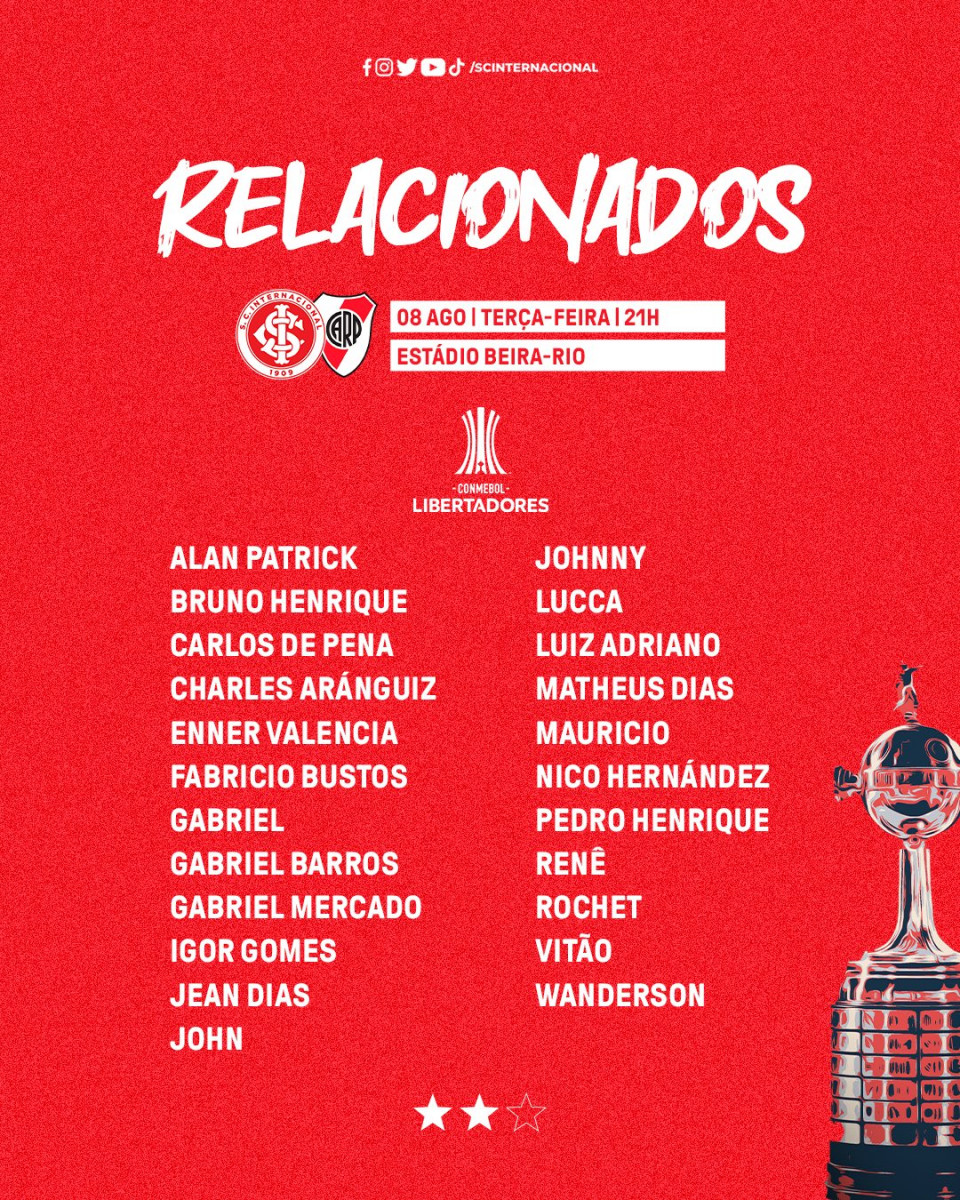 Esta es a lista de futbolistas que concentrarán con International para el partido de esta noche por la Copa Libertadores. Foto: Inter Porto Alegre