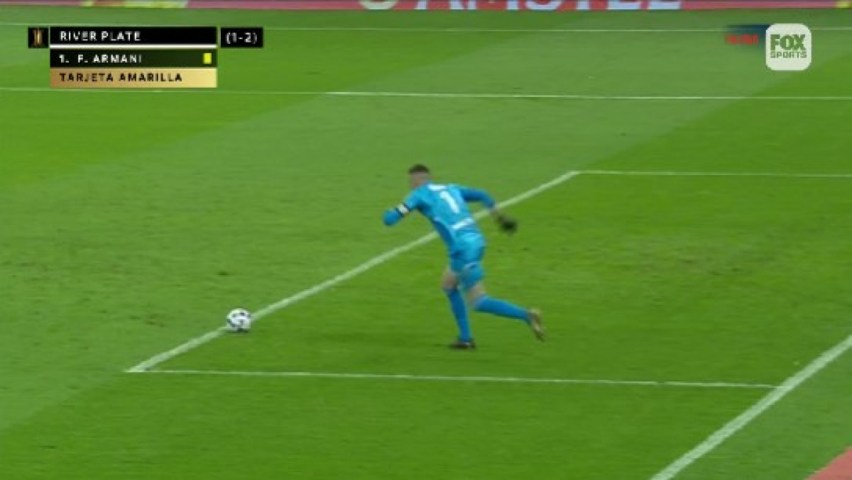 Minuto 53: el arquero de River es amonestado por demorarse en sacar. Foto: captura de Fox Sports.