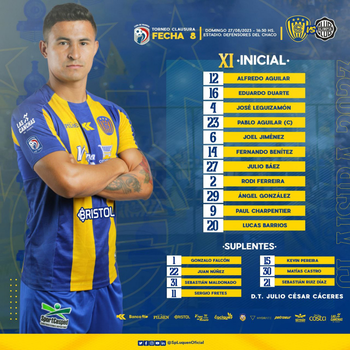 - Sportivo Luqueño: Alfredo Aguilar; Joel Jiménez, Pablo Aguilar, José Leguizamón, Eduardo Duarte; Ángel Gonzáñez, Julio Báez, Fernando Benítez, Rodi Ferreira; Lucas Barrios, Paul Charpentier.
