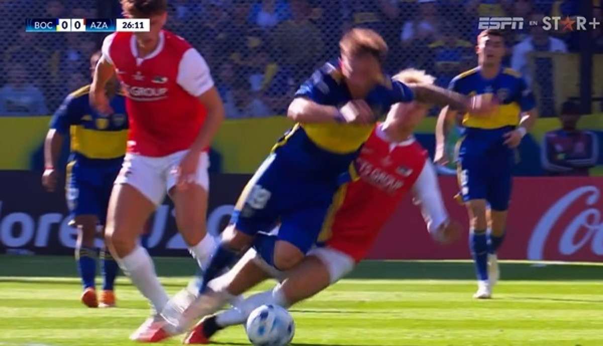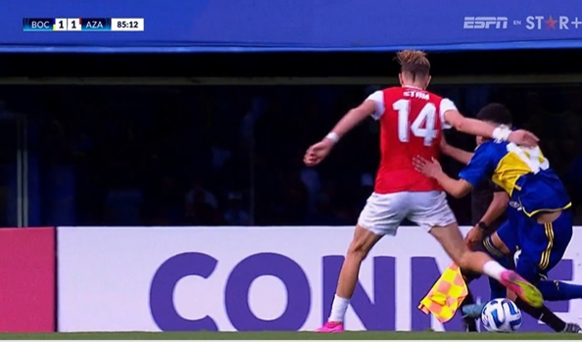Minuto 86. Finn Stam es amonestado por cortar con falta un ataque prometedor de Boca Juniors. Foto: captura de Star Plus