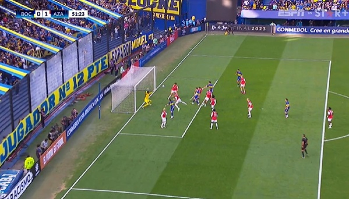 Minuto 58. Nahuel Génez no falla el cabezazo tras centro de tiro libre. Boca Juniors empata 1-1. Video: Star Plus