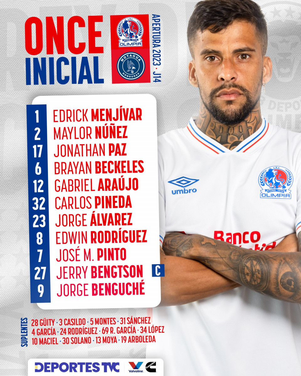 Olimpia vs. Motagua: alineación confirmada del León