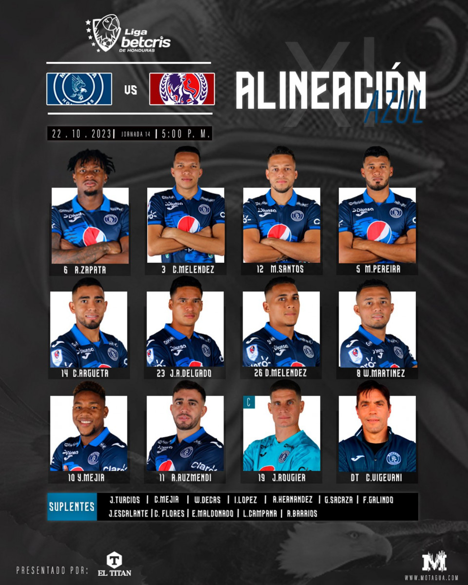 - Motagua: Jonathan Rougier; Ricky Zapata, Carlos Meléndez, Marcelo Pereira, Marcelo Santos; Denis Meléndez, Juan Ángel Delgado, Walter Martínez, Yeison Mejía; Lucas Campana, Agustín Auzmendi.