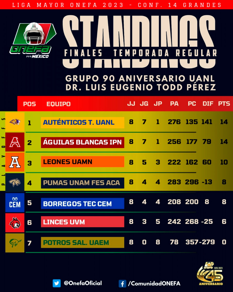 ¿Cómo terminaron Águilas Blancas y Leones Anáhuac en la Conferencia de los 14 Grandes?