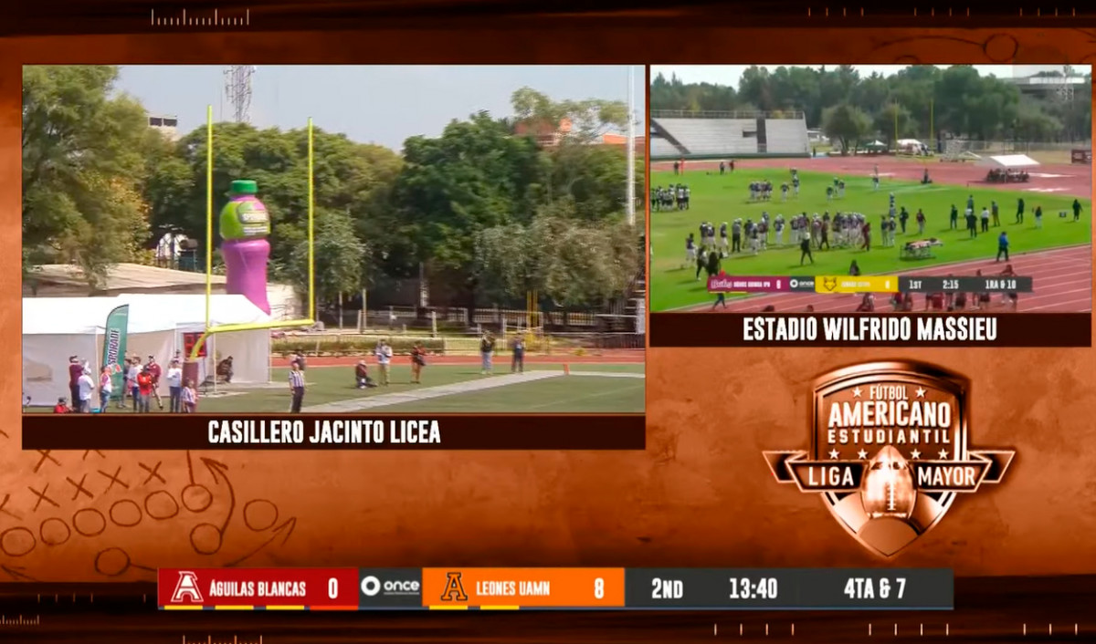 Desde 20 yardas, los Leones Anáhuac suman tres puntos más hacia el cierre del segundo cuarto. 2do cuarto 00:07 | LEO 11-3 ABL. Foto: Canal Once