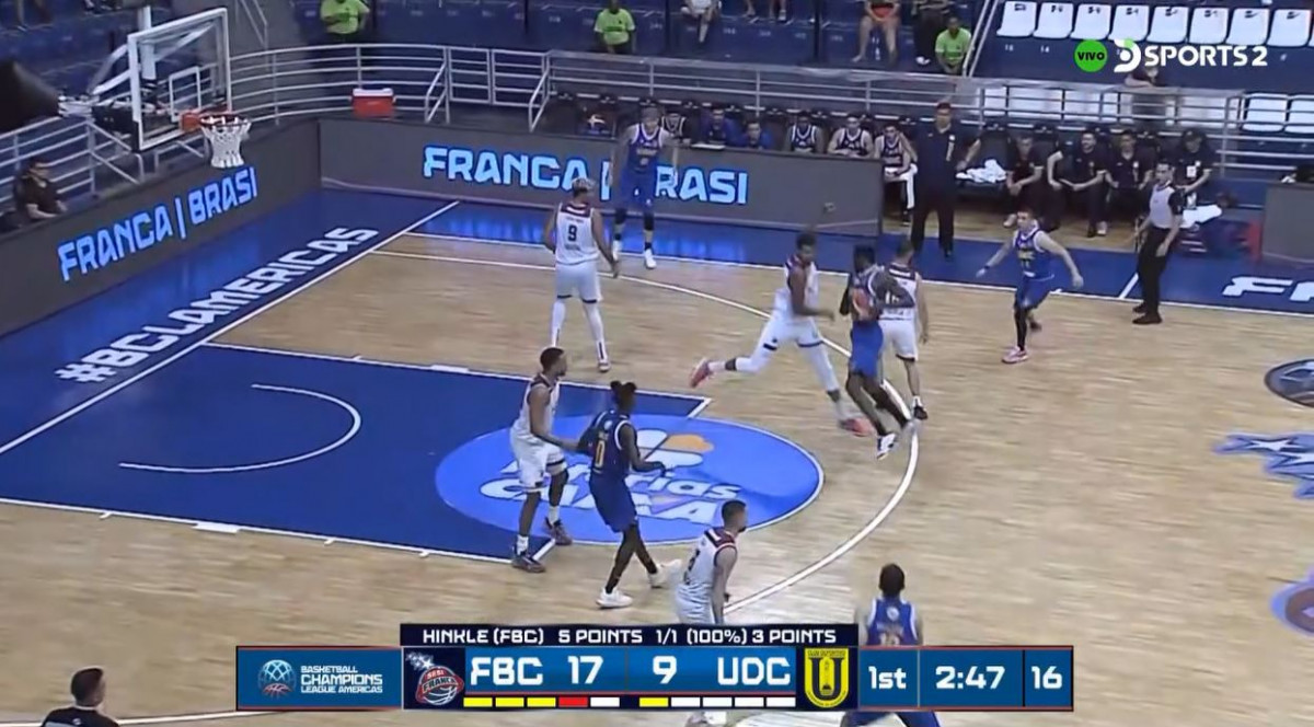 Jackson Jr. acaba de anotar canasta y Franca comienza a tomar ventaja ante U. de Concepción. Por ahora, el marcador está a su favor de los brasileros.
