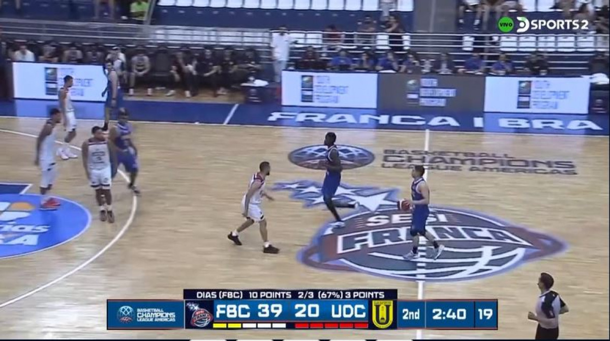 Franca va liderando el juego ante Universidad de Concepción por 17-9 en esta primera parte del Basketball Champions League Américas 2023-24.