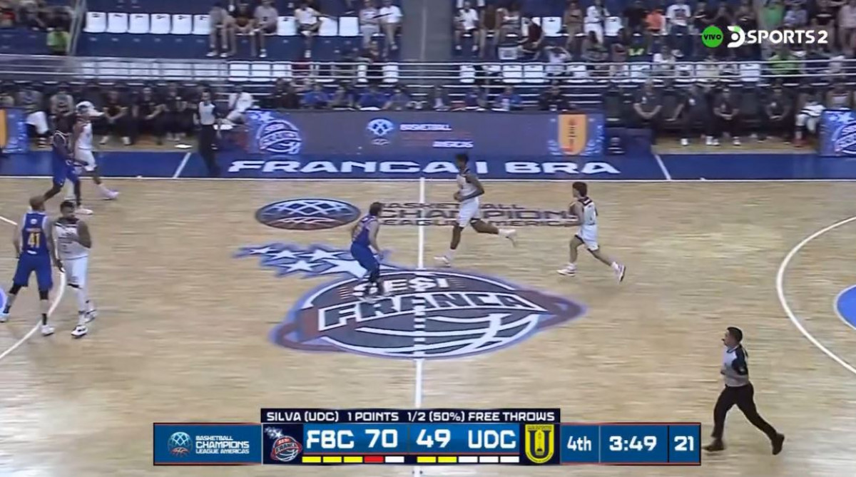 Se establece una nueva canasta para Franca tras la performance de Ferreira.U de Concepción sigue abajo 46-68 ante el cuadro brasilero en este 2do tiempo.