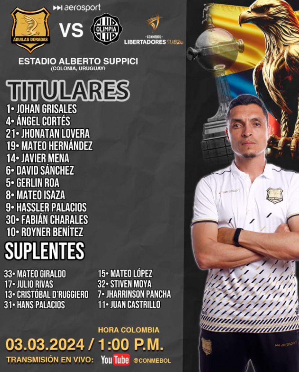 Olimpia vs. Águilas Doradas sub-20: el once de los colombianos