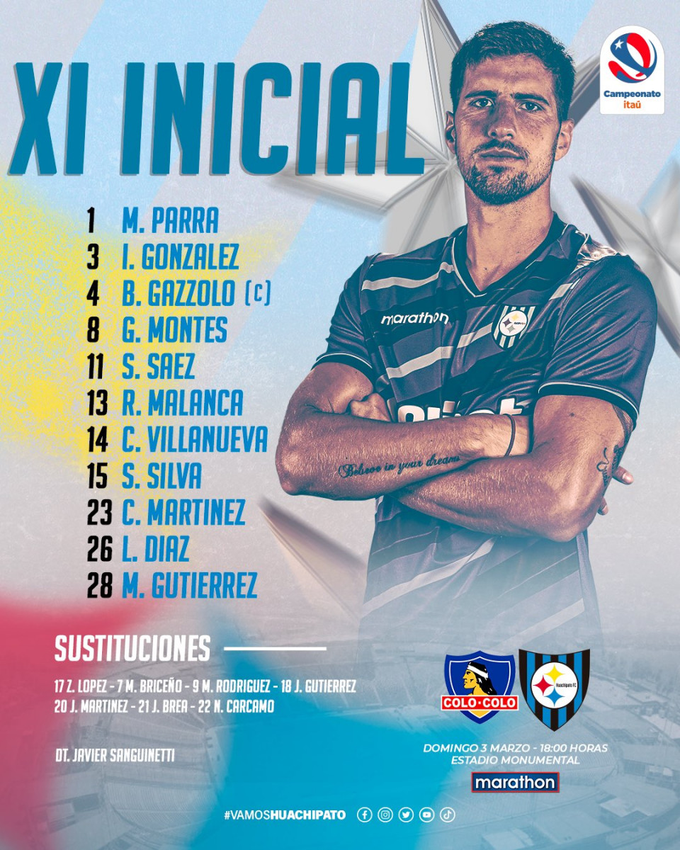 Parra, Gonzalez, Gazzolo, Montes, Saez, Malanca, Villanueva, Silva, Martínez, Díaz, Gutiérrez. Foto: Huachipato.