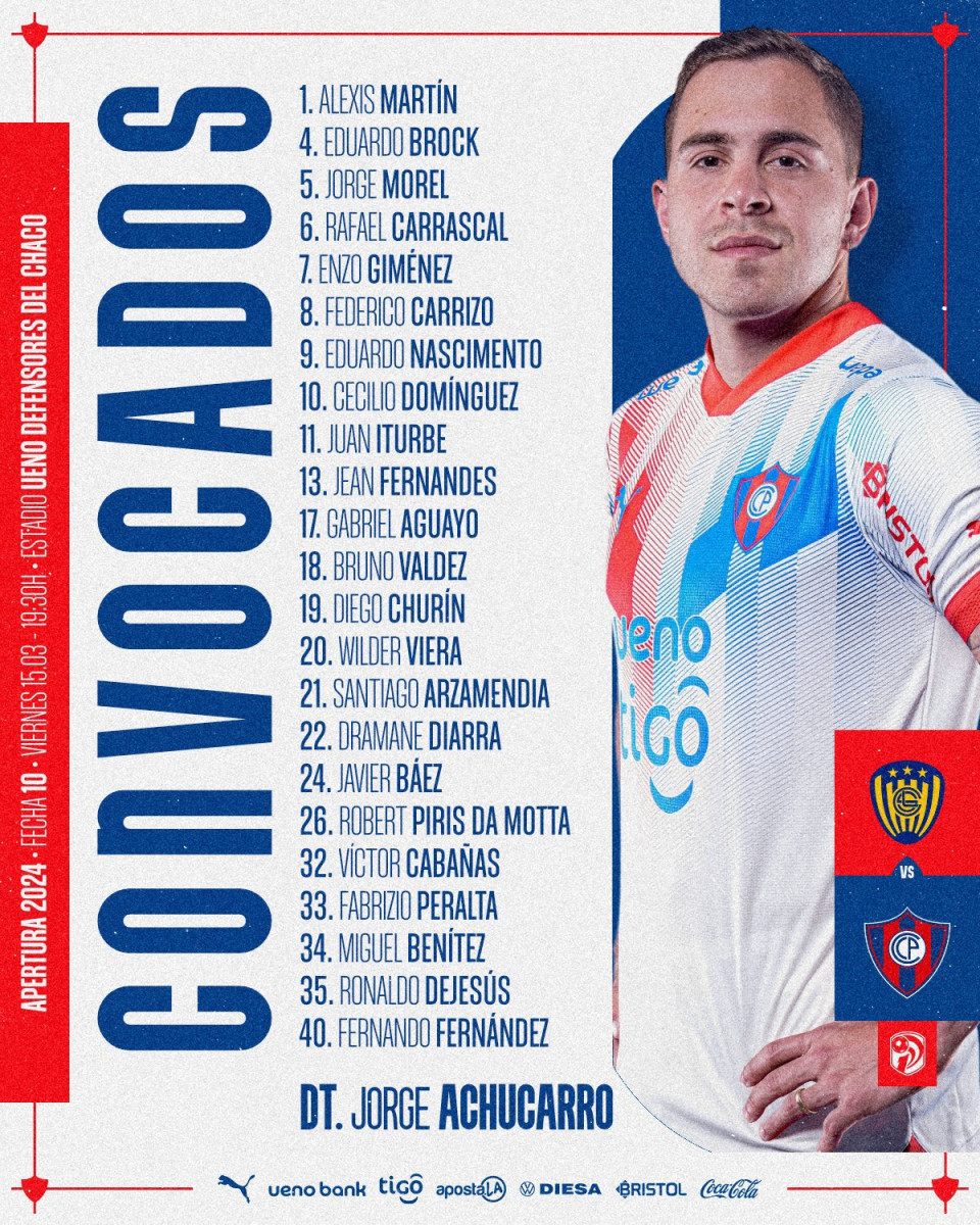 Convocados de Cerro Porteño vs. Sportivo Luqueño