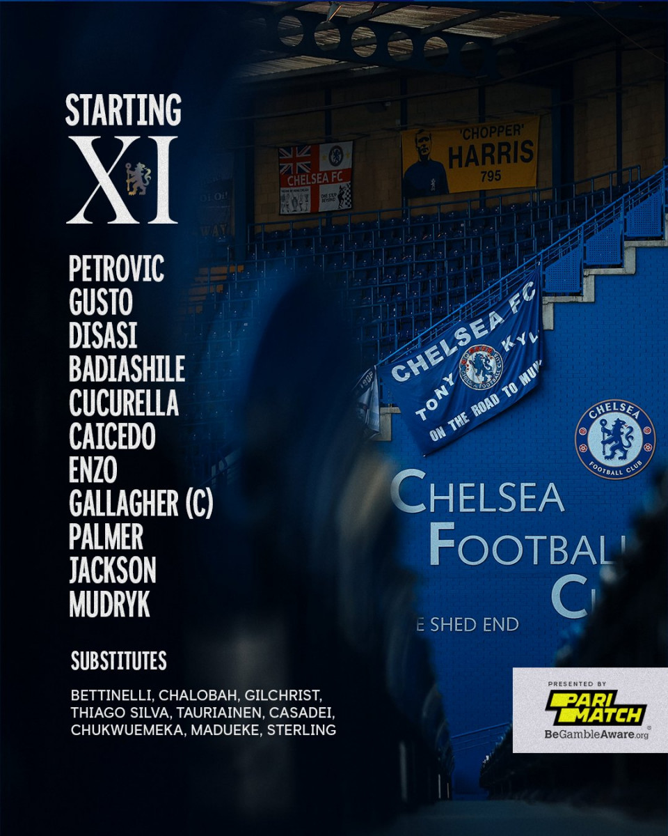 - Chelsea: Petrovic; Gusto, Badiashile, Disasi; Cucurella, Enzo, Caicedo, Palmer; Jackson, Mudryk, Sterling.