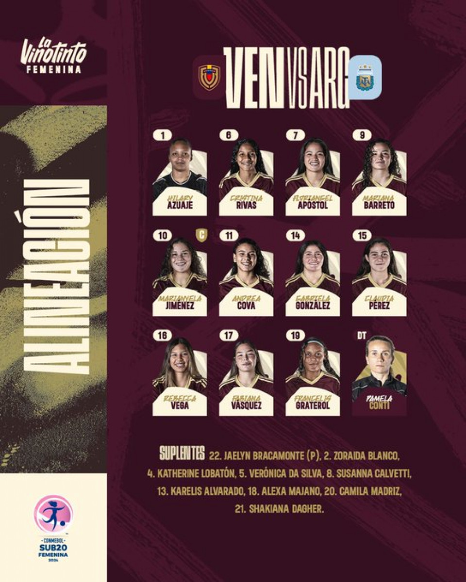 Venezuela clasificó al Mundial Sub-20 Femenino 2024 tras empatar 2-2 con Argentina por la fecha final del Sudamericano Femenino Sub-20 este domingo 5 de mayo en el Estadio Alberto Spencer de Guayaquil. La Vinotinto de Pamela Conti inició arriba en el marcador con gol de Francelis Graterol (4'). La Albiceleste respondió de tiro libre con Sofía Domínguez (41'). Cuando Kishi Núñez (57') parecía apagar las esperanzas caribeñas, Mariányela Jiménez (58?) reaccionó con un soberbio zapatazo para el resultado del pase a la segunda cita mundialista en la historia del país llanero.