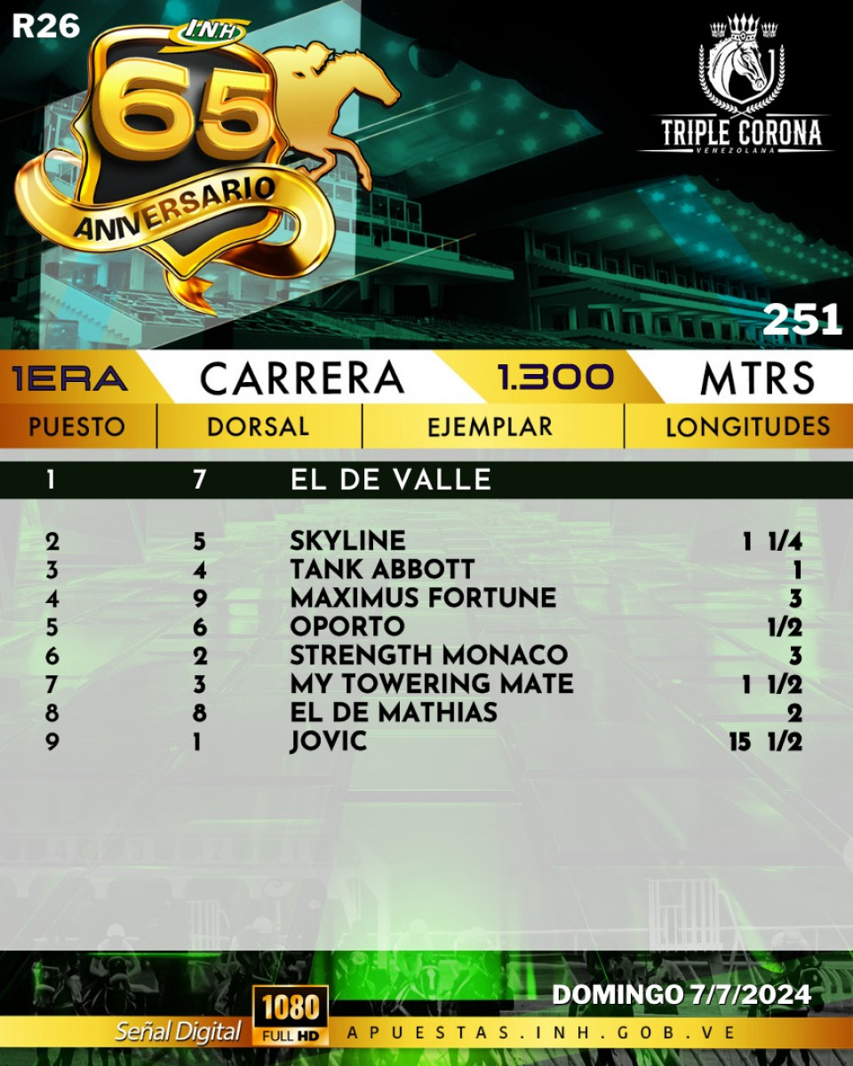 Por la apuesta a ganador, el de Valle pagó un dividendo de 31.81 bolívares. Foto: INH