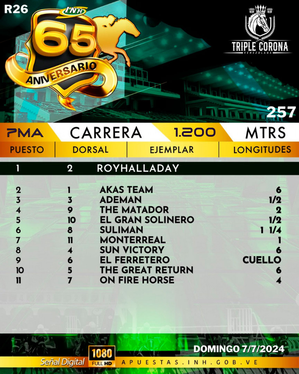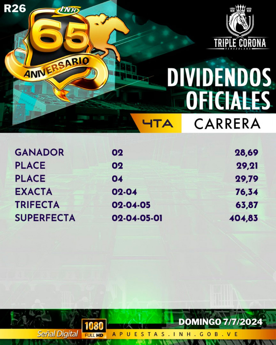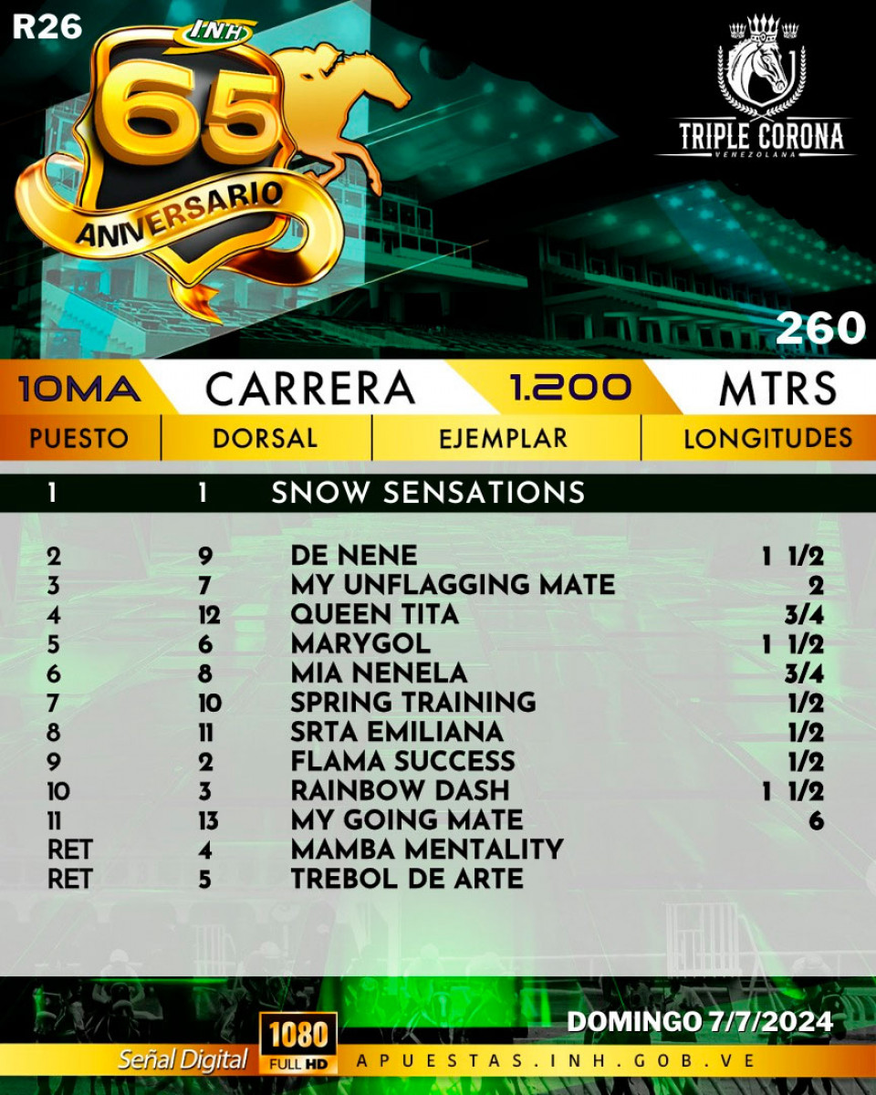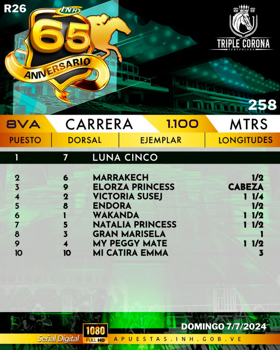 El Hipódromo La Rinconada celebró otra edición del 5y6 hoy, 7 de julio. Las seis carreras válidas del día ya se disputaron, con triunfo de varios favoritos, y el monto sellado superó los 31 millones de bolívares. Aunque no hubo ganador de un cuadro único con seis aciertos, las recompensas para los apostadores afortunados siguen siendo bastante altas. Liga tu jugada con nosotros y entérate qué tal les fue con sus pronósticos a los expertos y retrospectos hípicos.