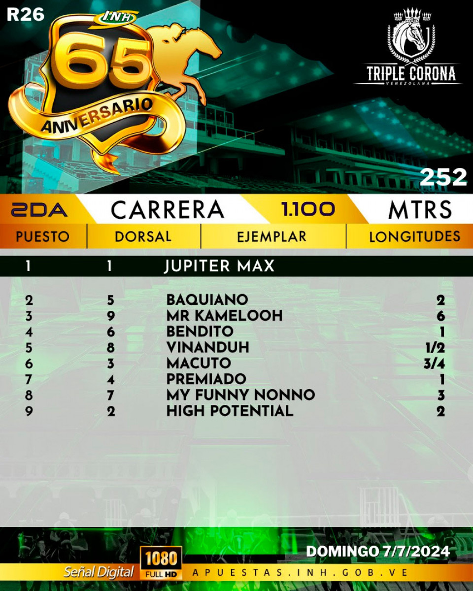 La Rinconada EN VIVO: Júpiter Max gana la segunda carrera de hoy