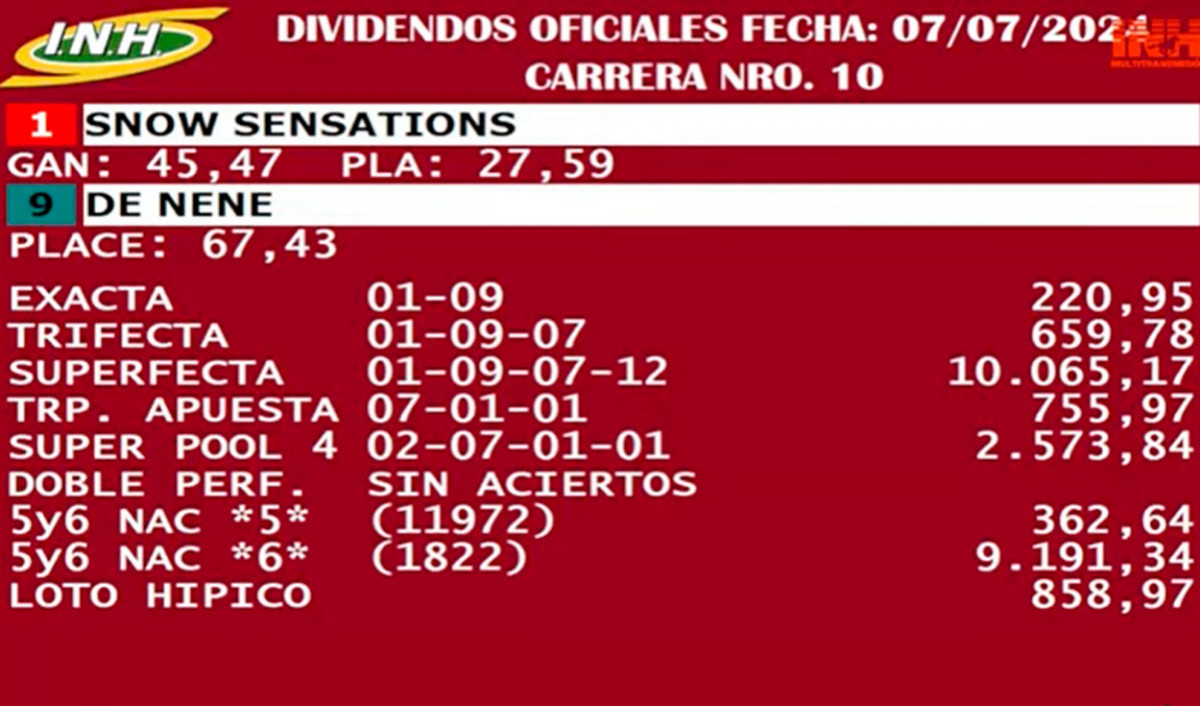 Revisa cuánto pagan los juegos de apuestas por los resultados de la segunda carrera. Foto: INH