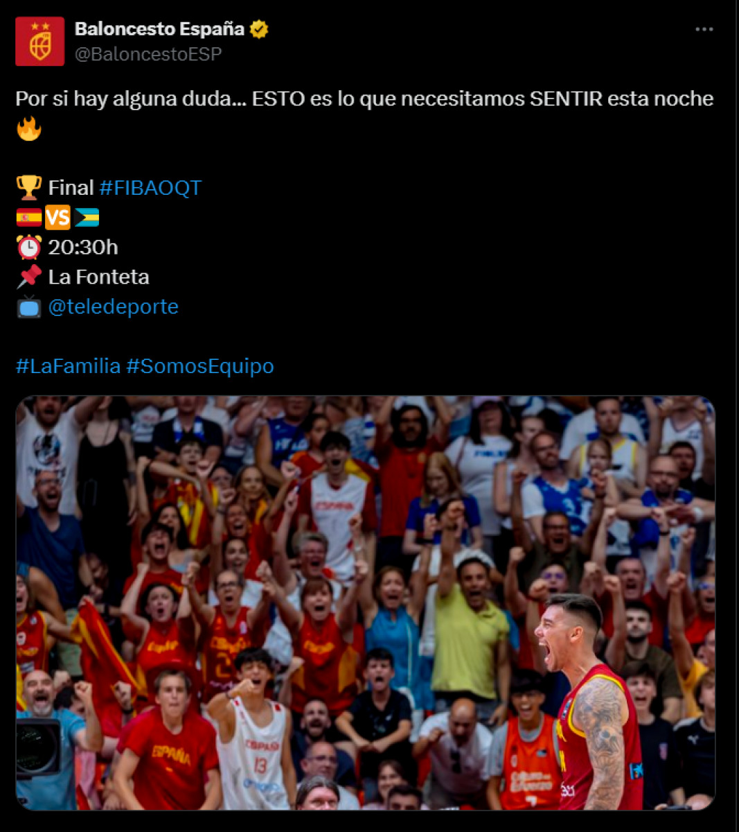 Así forma 'La Familia' para esta Gran Final del Preolímpico de Baloncesto.