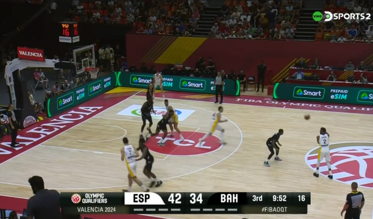 A poco de terminar el segundo cuarto, España consigue una diferencia de 11 puntos sobre Bahamas. El sueño olímpico cada vez más cerca. ESP 42-31 BAH