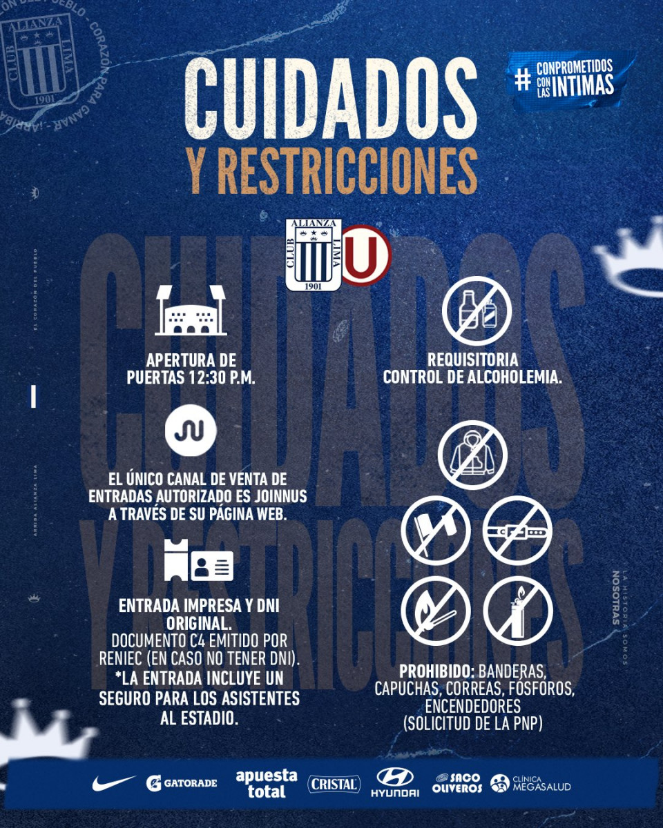 El conjunto local dio a conocer las restricciones para el ingreso de los fanáticos al estadio donde se jugará el clásico femenino. Foto: Alianza Lima Femenino
