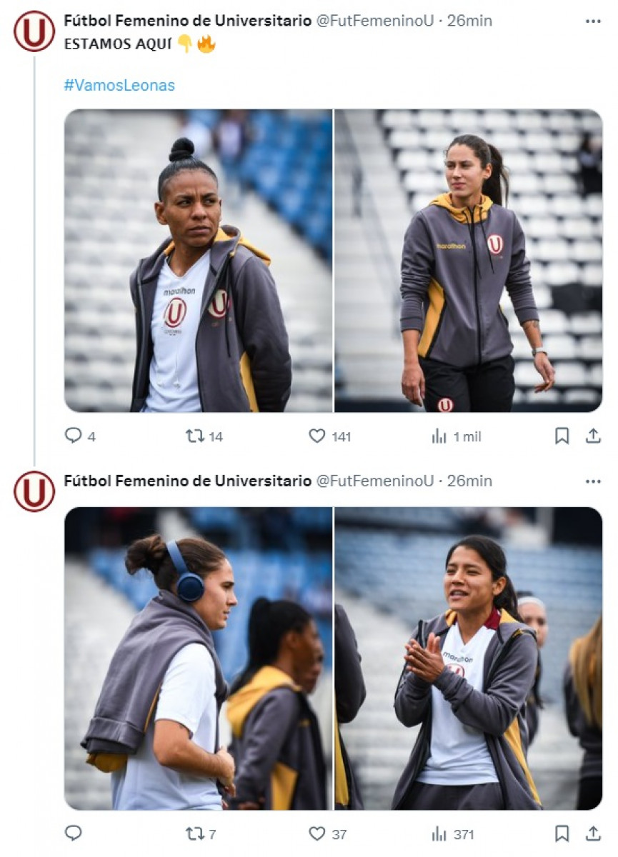 Las jugadoras del equipo crema se lucen en el estadio Alejandro Villanueva a poco más de media hora para el inicio del clásico. Foto: captura de Universitario/X