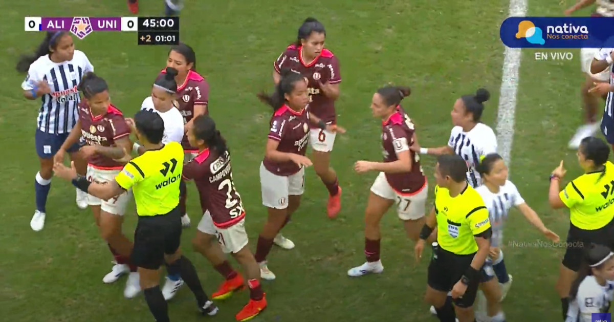 Las jugadoras de Alianza Lima y Universitario de Deportes se fueron a las manos y el árbitro paralizó el encuentro. Sanguinetti, integrante del comando técnico de las leonas, fue expulsado.