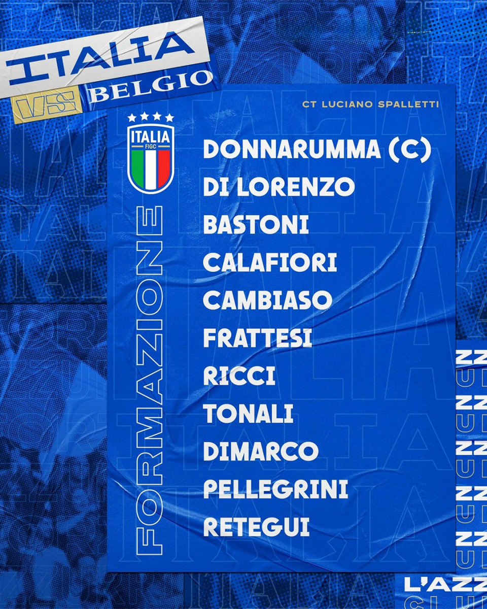 - Italia: Gianluigi Donnarumma; Giovanni Di Lorenzo, Alessandro Buongiorno, Alessandro Bastoni; Raoul Belanova, Samuele Ricci, Sandro Tonali, Davide Frattesi, Federico Dimarco; Mateo Retegui, Giacomo Raspadori.