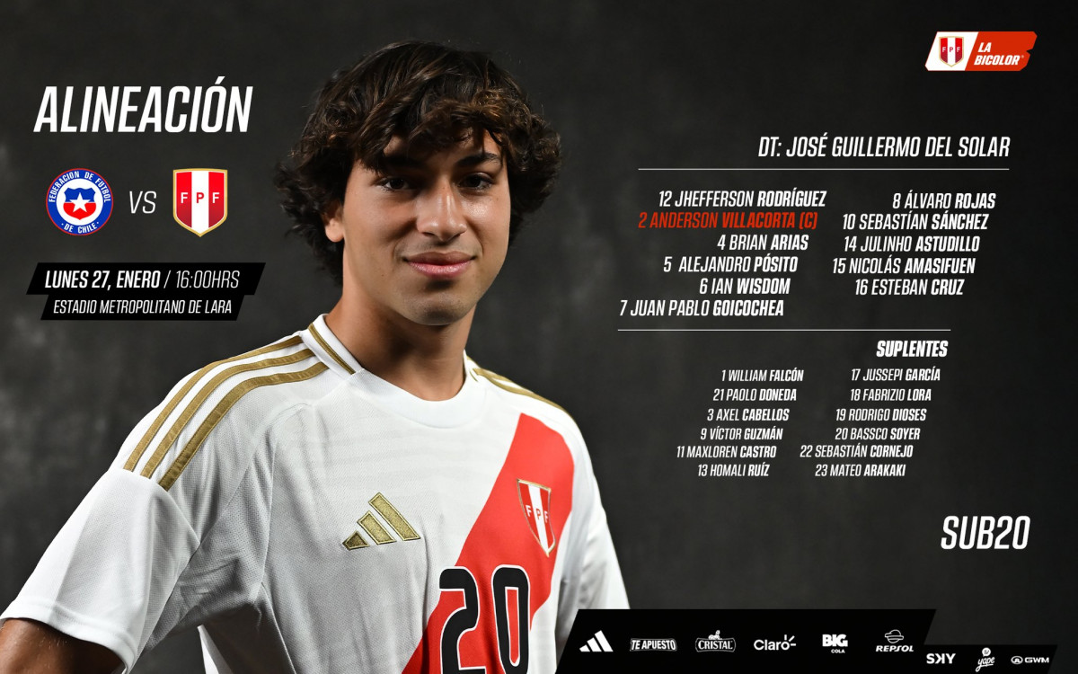 La selección peruana quedó eliminada del Sudamericano Sub-20. Pese a que los dirigidos por José Guillermo del Solar empezaron perdiendo el encuentro a los 12 minutos, Bassco Soyer anotaría la paridad sobre los 24' y Juan Pablo Goicochea convirtió el segundo tanto a los 52'. Sin embargo, Chile lograría darle vuelta al encuentro sobre el final del encuentro gracias al doblete de Francisco Rossel.
