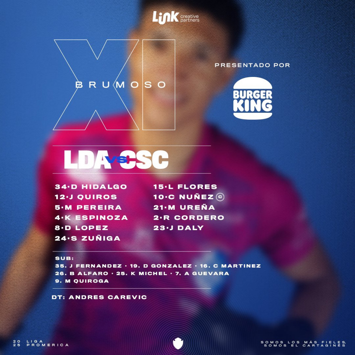 Cartaginés, por su parte, llega a este encuentro tras derrotar por 2-1 a San Carlos. Hasta el momento, los Brumosos se posicionan séptimos con 7 puntos.