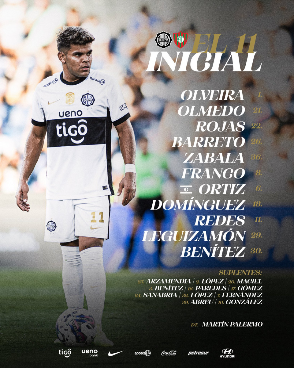 - Olimpia: Olveira; Olmedo, Rojas, Barreto, Zabala; Domínguez, Ortiz, Leguizamón; Redes, González y Benítez.