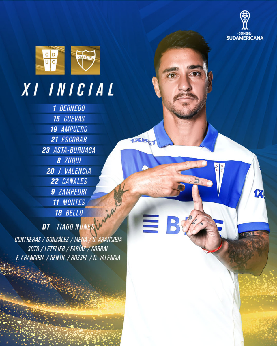 Bernedo, Cuevas, Ampuero, Escobar, Asta-Buruaga, Zuqui, Valencia, Canales, Zampedri, Montes y Bello. Foto: X/Cruzados.