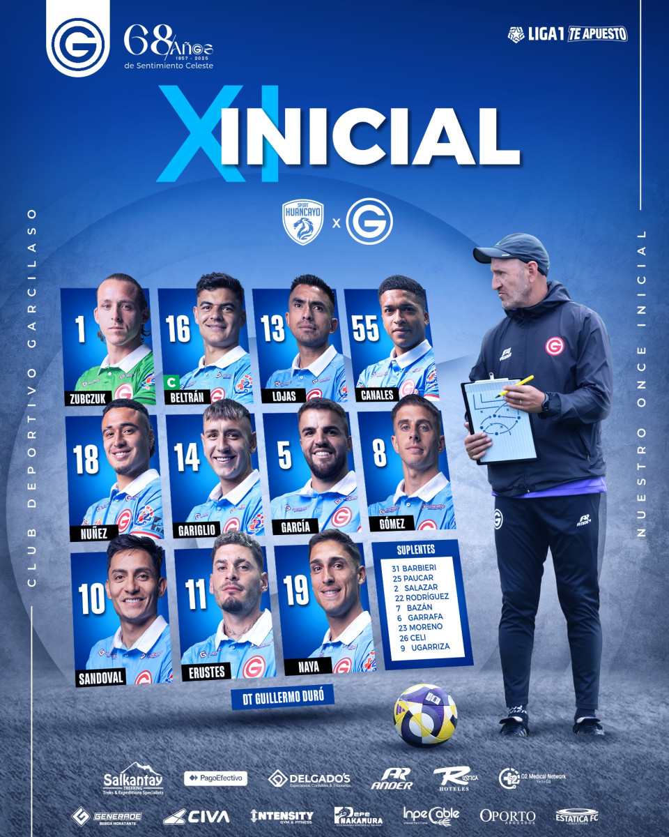 Zubczuk; Núñez, Gariglio, Beltrán, Canales, Lojas; Sandoval, Gómez, García, Erustes; Naya. Foto: Deportivo Garcilaso