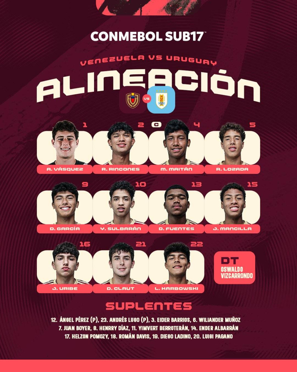 Venezuela vs Uruguay sub-17 EN VIVO: ¡alineación de la Vinotinto!