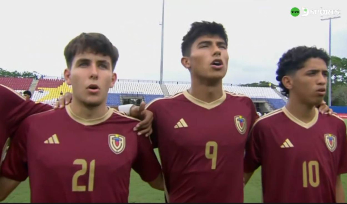 Los jugadores de la sub-17 entonaron con fuerza el himno nacional venezolano. Foto: DSports