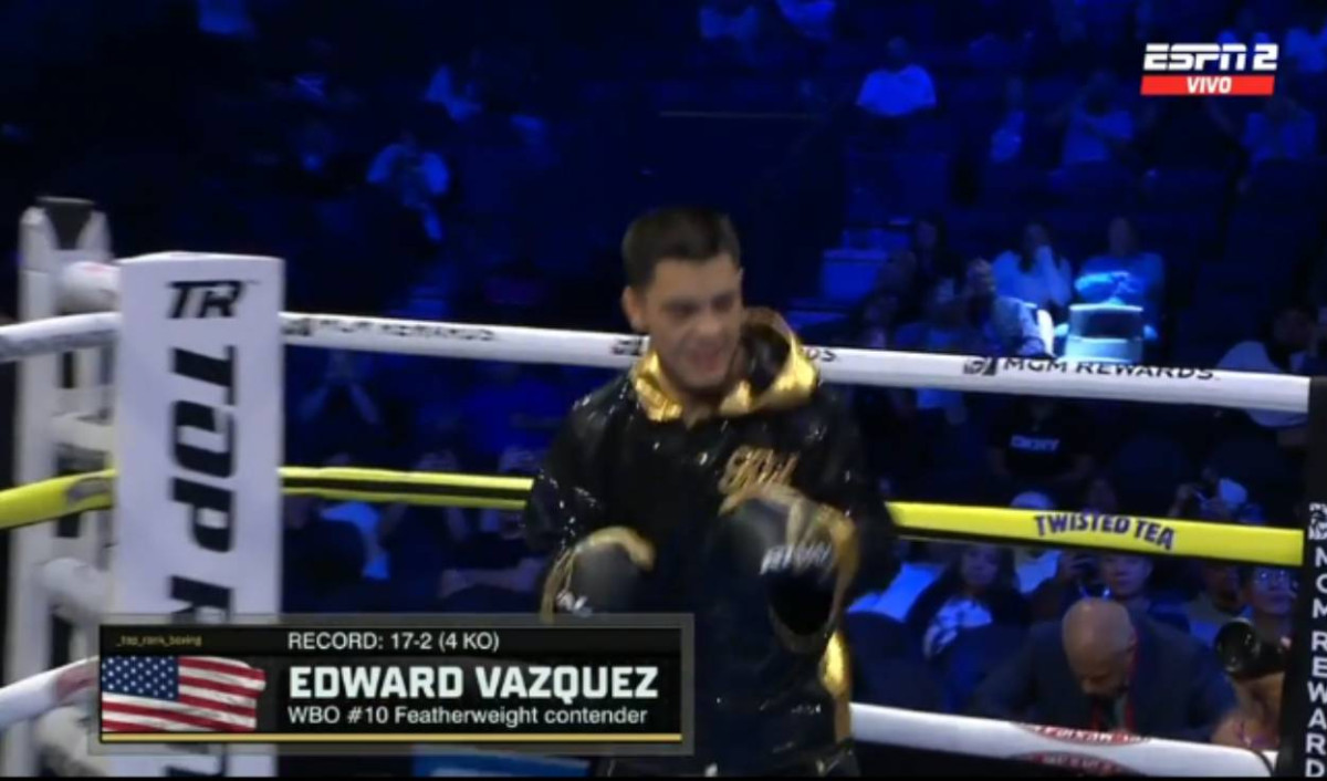 Edward 'Kid' Vázquez acaba de llegar al ring del T-Mobile Arena, a la espera de su rival. Foto: ESPN