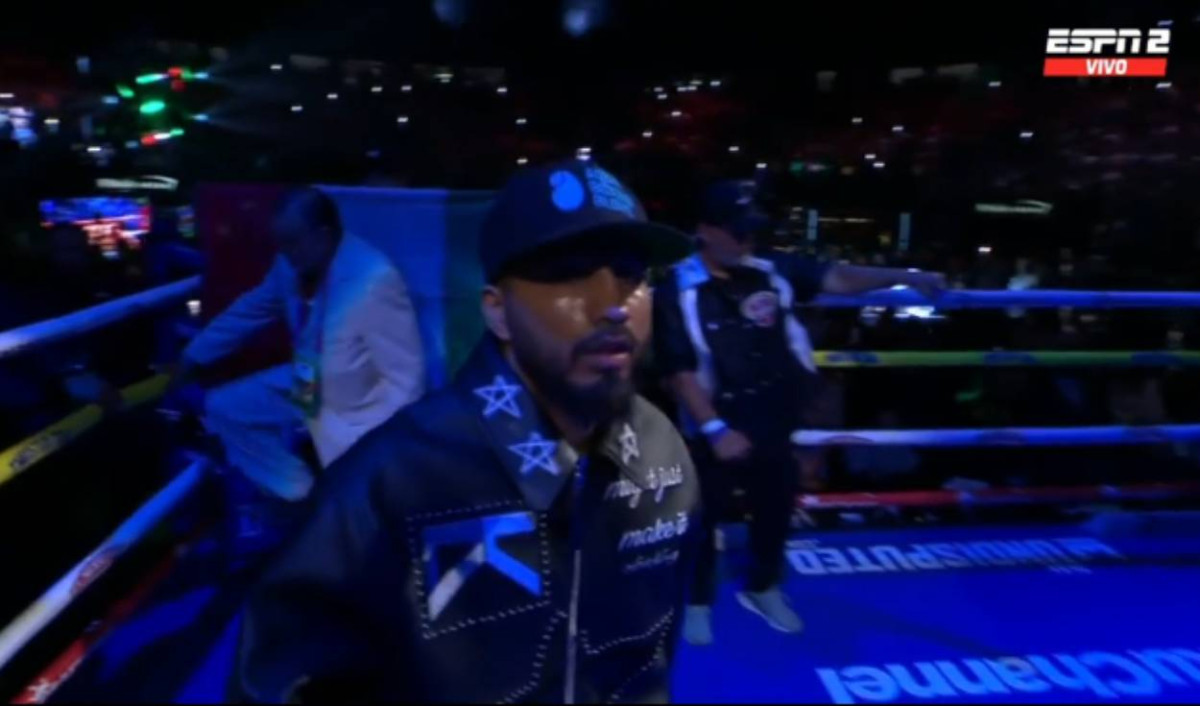 Rafael Espinoza llega al ring acompañado del cantante Chayo Rubio. Foto: ESPN