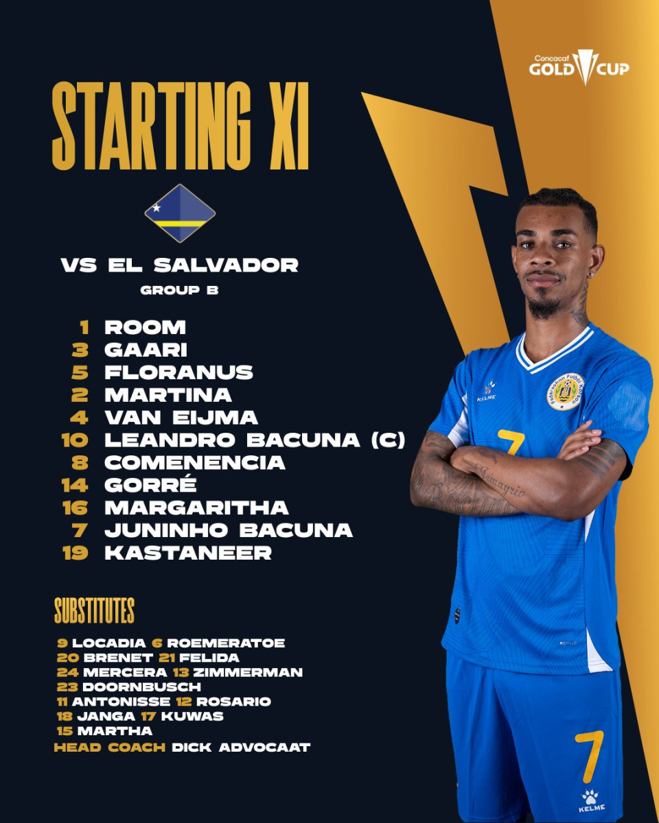 Así formará el equipo local: Room, Gaari, Floranus, Martina, Van Eijma, Bacuna, Comenencia, Gorré, Margaritha, Juninho Bacuna y Kastaneer. Foto: Gold Cup