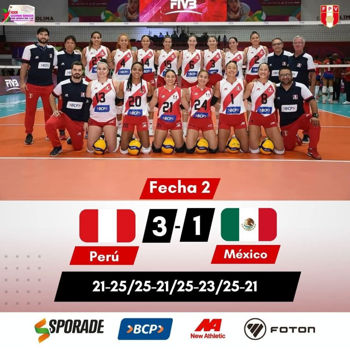 La selección peruana de vóley logró una nueva victoria en el grupo A de la Copa Panamericana de Vóley 2025. Por la fecha 2, el sexteto dirigido por Antonio Rizola derrotó 3-1 a México con parciales de 21-25, 25-21, 25-23 y 25-21. Con esta remontada, las Matadoras encadenan su segundo triunfo consecutivo y lideran la tabla de su grupo, con 7 puntos. Este martes, por la jornada 3, la escuadra nacional enfrentará a Costa Rica.