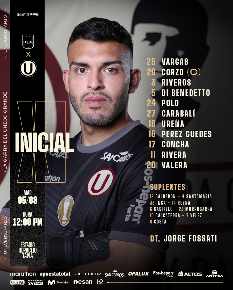 Alineaciones del Universitario ante Alianza Universidad