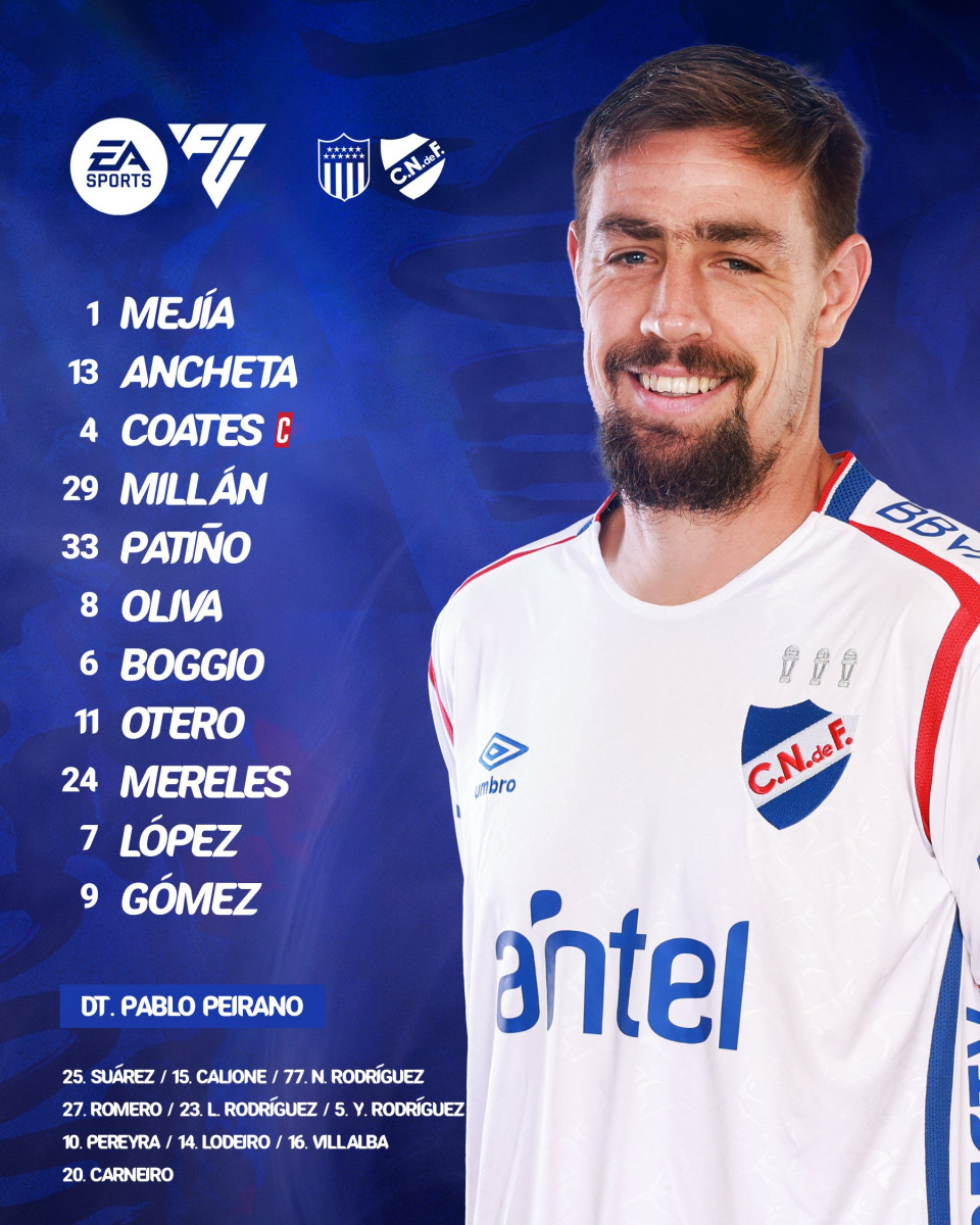 - Nacional: Luis Mejía; Emiliano Ancheta, Sebastián Coates, Julián Millán, Juan Pablo Patiño; Christian Oliva, Luciano Boggio; Nicolás López, Rómulo Otero, Exequiel Mereles; Maximiliano Gómez.