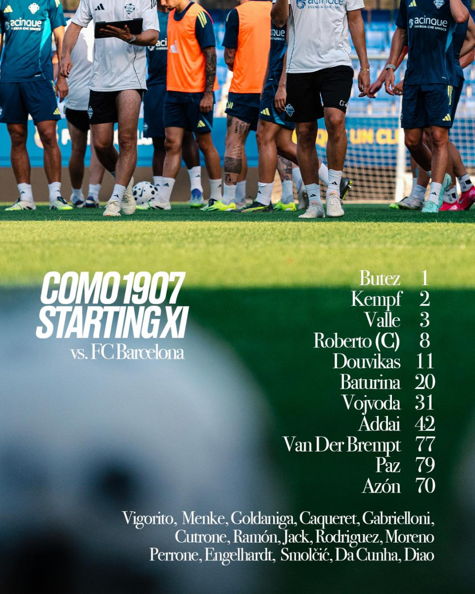 - Como: Butez, Álex Valle, Kempf, Van der Brempt, Vojvoda, Baturina, Perrone, Nico Paz, Assane Diao, Douvikas y Addai.